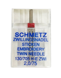 《SCHMETZ》※2本針(ZWI)・刺繍 / 11番(#75)幅2.0mm シュメッツ ドイツ製 家庭用ミシン針 EMBROIDERY 130/705H-E